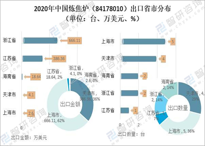 2020年中國煉焦爐出口數量、出口金額及出口均價分析
